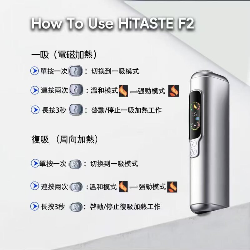 HITASTE F2 二回加熱煙機:突破性複吸設計・3200mAh 旗艦電量 (兼容 IQOS TEREA)