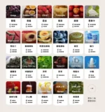 葡萄, 西瓜, 百香果, 荔枝, 蜜桃, 鳳梨, 芭樂, 青蘋果, 哈密瓜, 藍莓, 鐵觀音, 檸檬茶, 寶礦力, 凍檸可樂, 沙士, 薄荷, 綠豆, 龍井, 冰棍, 南極冰, 蔓越莓, 水梨, 莓果, 奇異果, 芒果, 煙草
